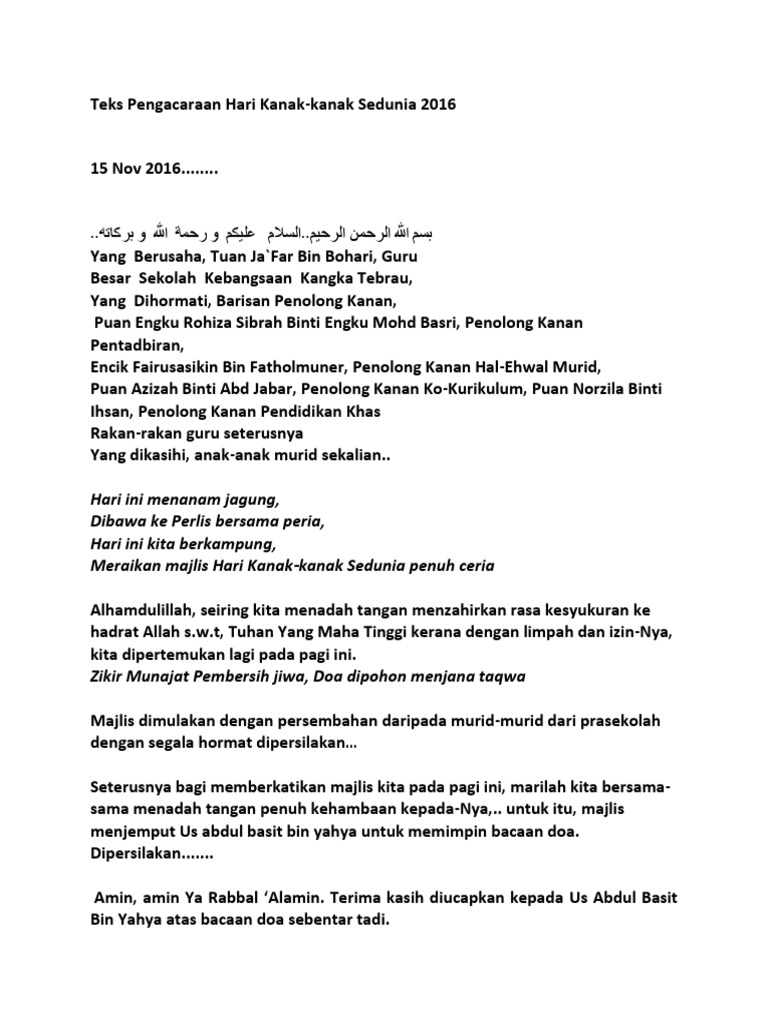 Teks Pengacaraan Hari Kanak