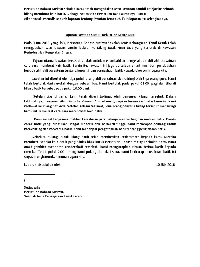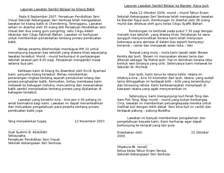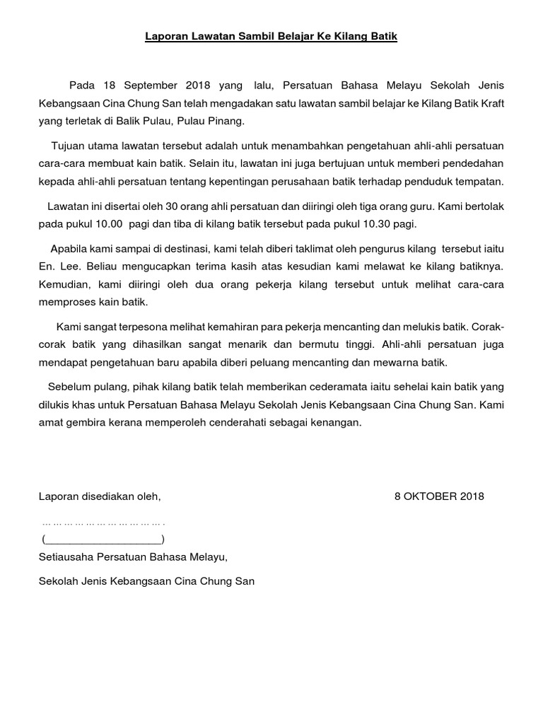 Laporan Lawatan Sambil Belajar Ke Kilang Batik Docx Laporan