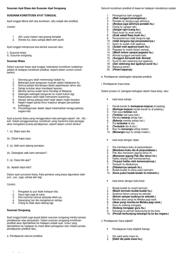 Cemerlang Bahasa Melayu Tatabahasa Ayat Biasa Ayat Songsang