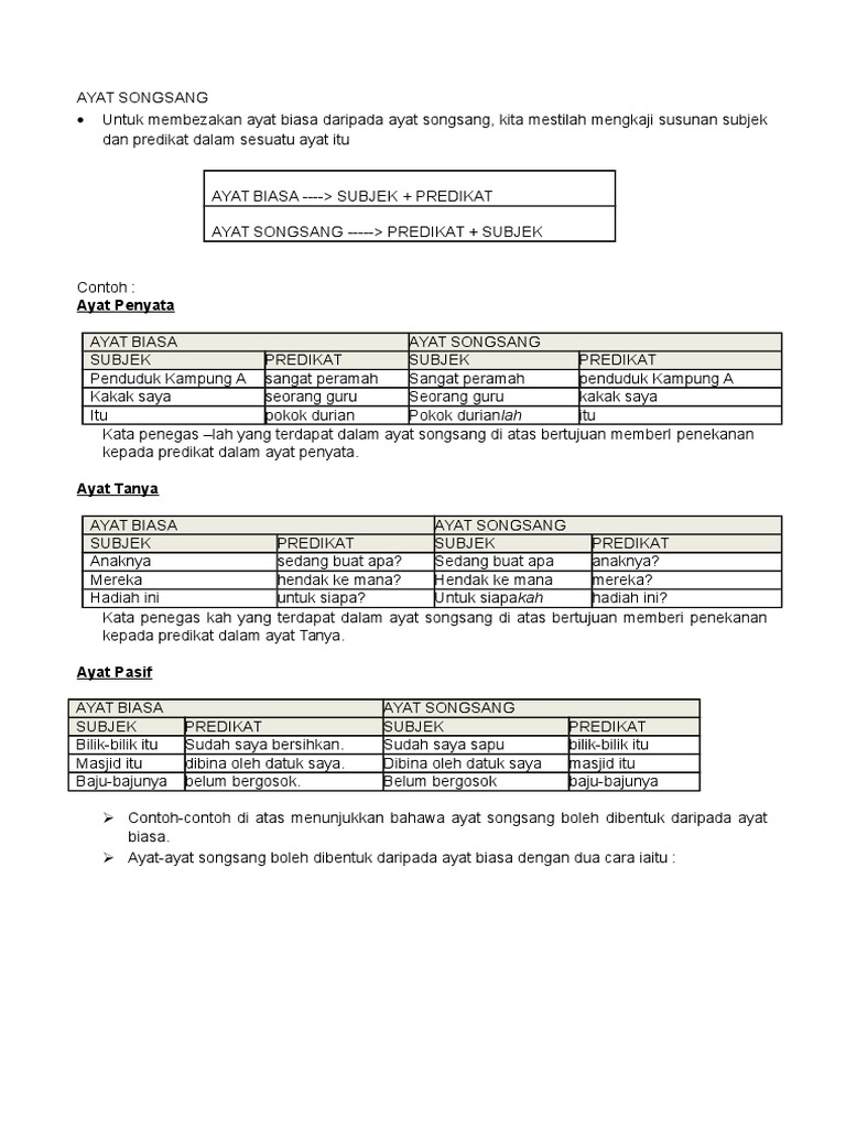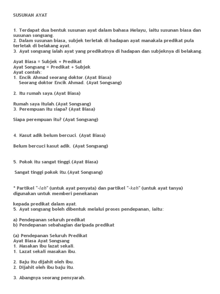 Susunan Ayat Biasa Dan Susunan Ayat Songsang Docx Document
