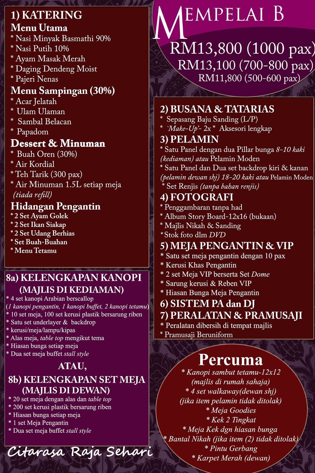 Pakej Katering Pakej Perkahwinan Lengkap 2019 2020 Cahaya Kristal