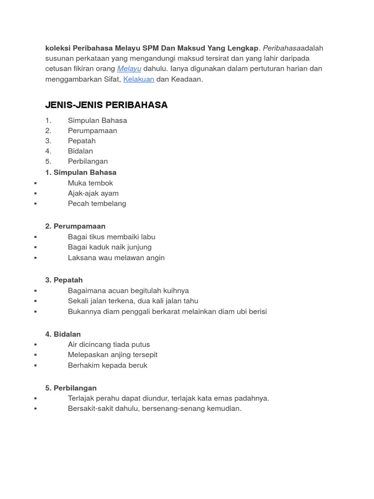 Pdf Koleksi Peribahasa Melayu Simpulan Bahasa Dan Maksud
