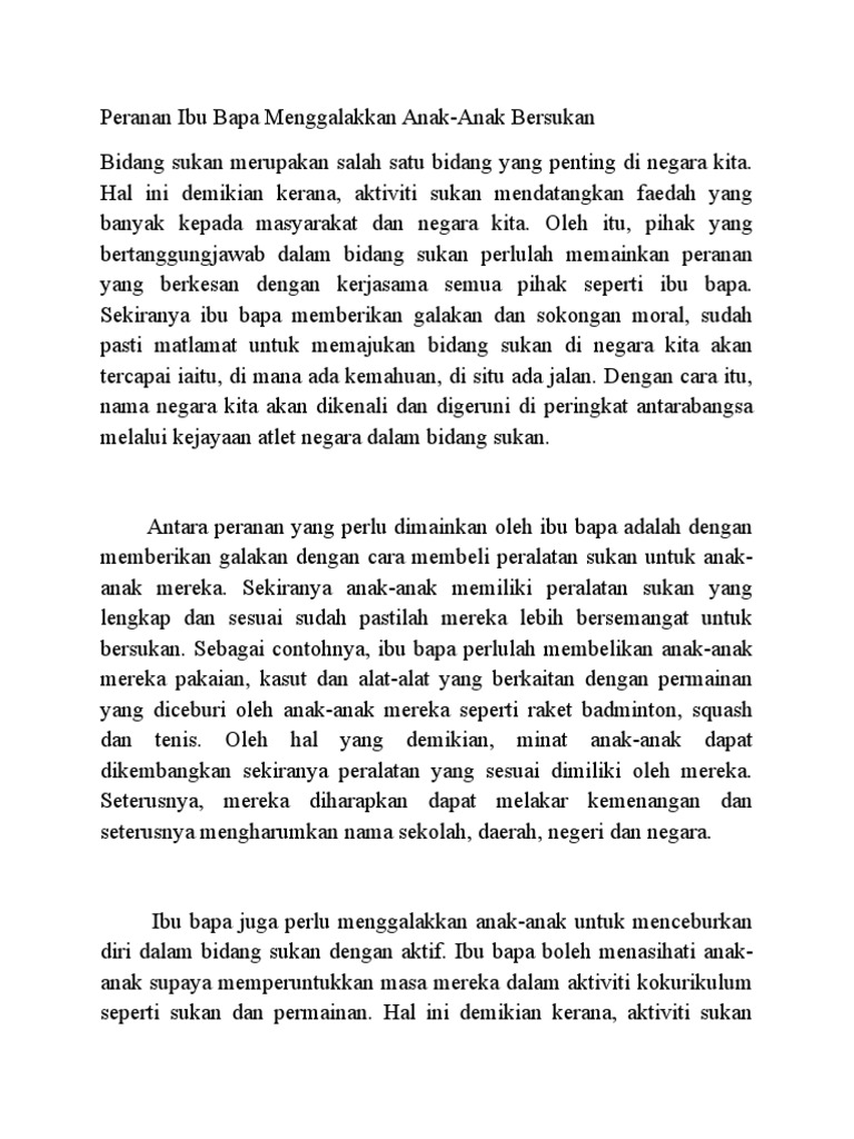 Karangan Peranan Ibu Bapa Menggalakkan Aktiviti Kokurikulum